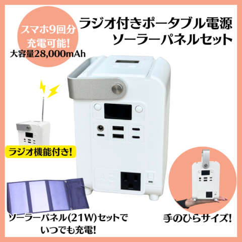 【12000円引き!】ラジオ付きポータブル電源 ソーラーパネルセット【WEB会員は送料無料】【防災用品特集】